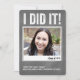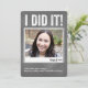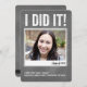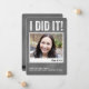 Invitez la famille et les amis à la fête de remise de diplôme de votre proche avec cette invitation ou annonce moderne de PiPo Press. Un "JE L'AI FAIT" en gras dans des gris ardoise neutres avec une ouverture sur une photo indique à tout le monde combien vous êtes fier de votre diplômé. Parfait pour une invitation à une fête ou une annonce de fin d'études secondaires, universitaires ou de troisième cycle. Personnalisez avec le nom de votre établissement scolaire dans une gamme de couleurs et cette invitation est prête à partir !