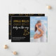 Carte de Noël personnalisée tout-en-un et Faire-part de grossesse. Ce design chic et élégant, en noir et or, est mis en place pour que vous puissiez ajouter votre photo et votre accueil personnalisé, vos noms et quand bébé est attendu. Le libellé se lit comme suit : "Jingle Bells, Jingle Bells, Baby on the Way" en écriture manuscrite et typographie moderne de style LED. Il a un arrière - plan noir avec des cloches et des coeurs d'or et beaucoup de place pour votre message personnalisé. Parcourez notre magasin pour trouver des modèles alternatifs.
