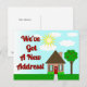 Une jolie carte postale de maison et d'arbre de style Art naïf représentant une maison dessinée dans un style "école primaire" pour informer à vos amis & famille que vous avez déménagé !