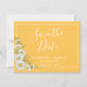 Jolie Enregistrer la date annonce comprend aquarelle blanc marguerites coin sur jonquille jaune arrière - plan avec blanc personnalisable blocs de texte dans les polices modernes