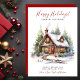 Cette aquarelle rustique Happy Holidays nouvelle maison pour les vacances carte de faire-part avec un cabine en bois décoré festivement avec des pentes et des arbres serait parfait pour envoyer à vos amis et famille maintenant que vous avez déménagé dans une nouvelle maison. Le sentiment est personnalisable. Obtenez assez pour que tous ceux que vous connaissez et aimez aient votre nouvelle adresse. Ils seront tellement excités par votre grand mouvement !