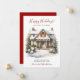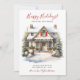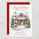 Cette aquarelle Happy Holidays nouvelle maison pour les vacances carte de faire-part avec un gîte festivement décoré avec des pignons de pin, une couronne, arcs rouges et arbres serait parfait pour envoyer à vos amis et famille maintenant que vous avez déménagé dans une nouvelle maison. Le sentiment est personnalisable. Obtenez assez pour que tous ceux que vous connaissez et aimez aient votre nouvelle adresse. Ils seront tellement excités par votre grand mouvement !