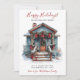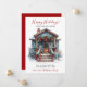 Cette aquarelle rustique Happy Holidays nouvelle maison pour les vacances carte de faire-part avec une porte d'entrée en bois décorée de façon festive avec des pignons et des arbres, une couronne, et arcs de vacances rouges serait parfait pour envoyer à vos amis et votre famille maintenant que vous avez déménagé dans une nouvelle maison. Le sentiment est personnalisable. Obtenez assez pour que tous ceux que vous connaissez et aimez aient votre nouvelle adresse. Ils seront tellement excités par votre grand mouvement !