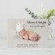 Mignonne 4 photo Noël faire-part de naissance de la saison des fêtes. L'image de votre nouveau-né remplit l'avant de la carte avec "Merry & Bright and up all night !" écrit dans un mélange de typographie élégante et d'un script élégant (ce texte peut être déplacé dans l'outil de conception pour convenir à votre photographie). Ajoutez leur nom et leur état de naissance. Au verso, ajoutez 3 photos supplémentaires, un accueil de vacances et vos noms.