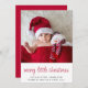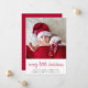 Faire-part de naissance de la saison des fêtes avec la photo de votre nouveau-né, "joyeux petit noël" dans un script rouge élégant et leur nom et leurs statistiques de naissance.