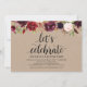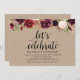 Cette carte d'invitation à thème floral burgundy rustique est parfaite pour votre réception de mariage / célébration de fête. Ajoutez vos coordonnées dans une police / lettrage noir assorti.