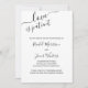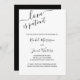 Carte d'annonce de report de mariage avec une palette de couleurs noir et blanc minimaliste. "L'amour est patient", ainsi que les noms de la mariée et du marié, sont écrits à la main dans un script élégant. Le modèle est configuré pour que vous puissiez personnaliser votre message de mise à jour de mariage à votre goût. Le texte de l'exemple indique "en raison d'événements récents, le mariage de [vos noms] a été reporté. Nous vous tiendrons informés dès que nous aurons fixé une nouvelle date. Ce fut une décision difficile et nous vous remercions de votre compréhension" - que vous pouvez conserver ou modifier à votre guise.