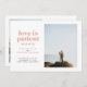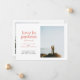Si vous avez pris la décision de vous enfuir au lieu d'attendre une date de mariage reportée, partagez votre grande nouvelle avec cette carte d'annonce de fugue. Elle comporte des textes rose blush et gris foncé ainsi qu'un espace pour une seule photo verticale sur le devant, ainsi qu'un espace pour la date et le lieu de votre fugue. Le verso de la carte comporte un espace pour une autre photo et une note personnelle.