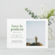 Si vous avez pris la décision de vous enfuir au lieu d'attendre une date de mariage reportée, partagez votre grande nouvelle avec cette carte d'annonce de fugue. Elle comporte du texte vert mousse et gris foncé et un espace pour une seule photo verticale sur le devant ainsi que de l'espace pour la date et le lieu de votre fugue. Le verso de la carte comporte un espace pour une autre photo et une note personnelle.