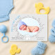 © Socialite Designs Inc. & LICENSORS. Annoncez la naissance de votre bébé garçon avec cette faire-part de naissance lapin lapin simple mais élégante. Les couleurs sont bleues et grises. Remplacez la photo modèle par votre propre image. Fait un beau carte photo de gardien pour la famille et les amis.