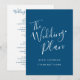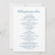 Le plan de mariage bleu et blanc liste simple pour que les invités aient un ordre de déroulement pour votre réception ou mariage. Idéal à utiliser comme carte de mariage pour informer vos invités des moments de mariage pendant votre événement, afin qu'ils sachent ce qui se passe et dans quel ordre. La formulation peut être modifiée pour répondre à vos besoins et à votre propre calendrier de réception. D'autres options de couleur sont disponibles. Création originale de Sarah Trett pour www.mylittleedenweddings.com sur Zazzle.