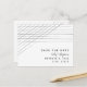 Un mariage élégant sauvez l'invitation de la date avec un motif rayé noir penser au sommet. Des invitations de mariage et d'autres objets de coordination peuvent être trouvés chez Jill's Paperie.