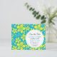 Un assortiment des fleurs tropicales en jaune lumineux recouvre la turquoise brillante pour rendre cette carte postale parfaite pour annoncer votre mariage tropical ou de destination. L'information customisée se tient en cercle blanc. Le motif et le cercle sont répétés sur l'inverse. Disponible dans des couleurs alternatives avec les produits assortis.