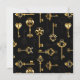 Seamless pattern of antique, gold and silhouette keys on black background.