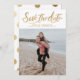 Gold Hand Lettering Vertical Photo Enregistrer la Date Annonce. Une photo entièrement personnalisable sauvegardez l'annonce de la date pour votre famille et vos amis. Cette verticale enregistrer la carte de date dispose de lettrage simple main or et motif pois or. Vous pouvez également customiser le dos de la carte de faire-part en changeant le motif avec votre photo ou une autre image.