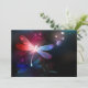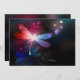 Lumineuse, volante, libellule rouge, avec des ailes transparentes et détaillées sur arrière - plan sombre, nocturne, lumineux avec plantes tropicaux et lucioles. libellule rouge.