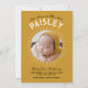 Cette belle faire-part de naissance Little Sunshine présente un design graphique audacieux et rétro. Ajoutez votre photo à la conception de soleil circulaire sur le devant de la faire-part bébé d'accueil et remplissez avec tous vos détails de naissance pour faire savoir à votre famille et à vos amis que votre petit soleil est arrivé! Sur le côté arrière, vous trouverez un modèle de collage photo en arc pour ajouter trois photos de vos portraits favoris et un court message. Partagez vos bonnes nouvelles avec cette présentation élégante pour la famille et les amis. Tous les éléments de cette carte sont entièrement personnalisables et disponibles en téléchargement pour une option facile et abordable pour diffuser vos bonnes nouvelles! Disponible en plusieurs couleurs. Faites-le le vôtre aujourd'hui !