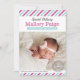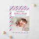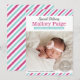 Annoncez l'arrivée de votre petite fille avec cette carte de naissance sur le thème du courrier aérien "Livraison spéciale". Des rayures diagonales rose magenta chaud et aqua avec une texture vintage en détresse encadrent la photo de votre nouveau-né, son nom et ses détails de naissance. Un graphique de tampon postal gris charbon ajoute une touche ludique finale. Le dos présente un motif rayé coordonné. Tout le texte, les couleurs et la photo sont entièrement personnalisables.