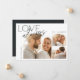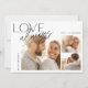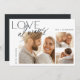 Une élégante carte de fiançailles photo collage avec trois photos (un carré et deux horizontales), avec "l'amour toujours" dans bloc moderne et le texte en haut et à gauche. Personnalisez avec votre message personnalisé (illustré par "nous sommes engagés !") et vos noms.