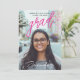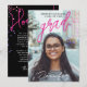 Ce Faire-part photo design moderne pour graduation présente un design minimaliste orné d'audacieux magenta et de typographie blanche, complété par une grande photo impressionnante, sur le devant. Retournez-le à l'arrière, où tous les détails de graduation sont élégamment présentés contre un arrière - plan noir élégant. N'hésitez pas à personnaliser la photo et les textes pour en faire la vôtre. De plus, il est facilement disponible en format de téléchargement numérique pour un partage facile. Faites une déclaration avec cette faire-part chic ! !