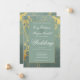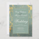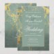 Moderne et sophistiqué, faire-part de mariage avec un fond sarcelle et marbrure dorée. Vous pouvez changer les polices de caractères sur ce faire-part de mariage si vous le souhaitez.