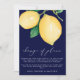 Devez-vous reporter votre mariage ? Envoyez cette annonce de changement de plans à vos invités. Cette annonce présente des citrons aquarelle jaunes et des feuilles vertes, faisant allusion à l'expression populaire "quand la vie vous donne des citrons, faites de la limonade". Le fond est d'un bleu marine saisissant, avec "changement de plans" en calligraphie moderne blanche, et votre message en police sans empattement blanche.