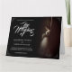 faire-part mariage à l'image d'une mariée rêveuse penchée contre un mur avec un bouquet de fleurs blanches dans le pénumbra - style classique. Les noms, le texte, l'emplacement et la date peuvent être customisés dans le modèle.