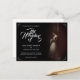 faire-part mariage à l'image d'une mariée rêveuse penchée contre un mur avec un bouquet de fleurs blanches dans le pénumbra - style classique. Les noms, le texte, l'emplacement et la date peuvent être customisés dans le modèle.