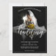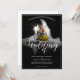 faire-part mariage avec photo d'une mariée rêveuse assise avec un bouquet jaune de fleurs dans le pénumbra - style classique. Les noms, le texte, l'emplacement et la date peuvent être customisés dans le modèle.