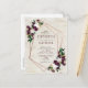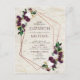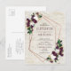 Moderne, tendance et magnifique, ce modèle de faire-part de mariage carte postale présente un motif géométrique cuivre orné de fleurs aquarelles prune, bordeaux marsala et de verdure luxuriante, sur une texture d'écorce de bouleau blanc imitation. Les noms des mariés et certains détails du mariage sont dans une couleur bordeaux riche assortie. Le verso de la carte postale permet d'inscrire votre adresse de retour et un message personnel. Copyright Elegant Invites. Tous droits réservés.