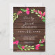 Faire-part Mariage champêtre en bois rustique avec fleurs ros