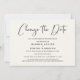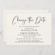 Mariage moderne minimal ajournement élégant faire-part crème légère. "Change the Date" est écrit dans un script élégant et vous pouvez facilement personnaliser avec les détails du report mariage.