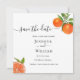 Élégant Enregistrer la carte de date avec l'illustration de l'agrumes orange aquarelle. Parfait pour les mariages d'été.
