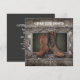 Bottes de cowboy rustiques vintage - Papeterie de mariage country rustique personnalisable pour mariage western, invitations de bapteme, cartons RSVP, cartes de remerciement, invitations de mariage et faveurs de mariage sont parfaits pour un mariage western, mariages de cowboy, mariages country, mariages de ferme, mariage de ranch, mariages de grange. Vous allez vous marier ? Tous les cowboys occidentaux et les filles de la campagne qui se marient viennent de trouver l'invitation de mariage parfaite, les cartes de sauvegarde de la date, l'aimant, la carte RSVP, les cartes de remerciement et les faveurs de mariage assorties pour inviter vos amis et votre famille à votre jour spécial. Après la cérémonie, vous pourrez passer votre nuit de noces avec vos proches, de la nourriture et de la musique country. Félicitations!!