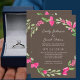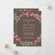 Des fleurs roses avec des branches et des feuilles de verdure encadrent le haut et le bas de l'invitation. Un fond coloré avec la police lui donne un aspect d'élégance. Personnalisez ce modèle pour ajouter vos informations. Le design est une couronne florale et peut être personnalisé pour s'adapter à l'intérieur de la carte. Cliquez pour personnaliser davantage pour apporter plus de modifications. Tout est personnalisable.