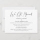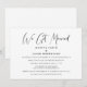 Faire-part élégant d'élopement ou de petit mariage et invitation à une réception pour informer la famille et les amis que vous vous êtes mariés, et les inviter à une réception ou une fête post-mariage. "Nous sommes mariés" est écrit dans un style élégant et vous pouvez ajouter vos noms, date de mariage et détails de l'invitation à la réception dans une typographie moderne simple.