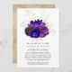 Invitation de mariage florale bleu royal, violet et violette avec des accents d'or personnalisables selon les spécificités de votre événement. En ces temps incertains, il peut arriver que vous deviez organiser un mariage plus petit que prévu initialement. Cette carte d'annonce enlèvera la gêne et vous enlèvera un poids de l'esprit ! Vous pouvez en outre offrir la possibilité de se joindre à vous pour une cérémonie virtuelle.