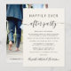 Faire-part de mariage ou d'élopement avec une crème légère élégante ou annonce de petit mariage combiné avec une invitation à une réception après le mariage ou une fête de célébration. Sur le devant, "Happily Ever After Party" est écrit dans un mélange de typographie moderne simple et d'un script tendance avec fioritures, et vous pouvez personnaliser votre annonce de mariage et votre invitation et ajouter vos noms dans un script ressemblant à une signature. Le verso présente votre photo de mariage préférée, vos prénoms et la date du mariage.