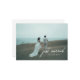 Faire-part de mariage 'Juste Mariés' avec photo moderne en écriture. Annoncez votre mariage en toute intimité à votre famille et à vos amis avec cette élégante carte de mariage personnalisable. Conçue avec une belle écriture manuscrite à l'avant et à l'arrière, personnalisez avec vos noms, une photo de mariage préférée et un message à tous vos proches au dos.