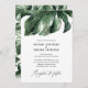 Un design d'invitation de mariage à motif de feuilles de palmier audacieux et magnifique. Les feuilles aquarelles dans des tons de vert atténués sont parfaitement équilibrées sur le fond blanc, ce qui donne un look sophistiqué. Fait partie d'une collection de mariage tendance.