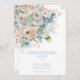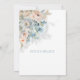 Un bouquet floral moderne et élégant rose pêche et bleu poussiéreux d'aquarelle avec son ombre doucement sur l'invitation et éclaboussant or éclaboussures et éléments, avec vos prénoms dans une police moderne avec une date mariage numérique en dessous et une petite police pour les détails.