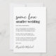 Annonce de mariage minimaliste moderne petit réduit. "Même amour, mariage plus petit" est écrit dans un mélange de typographie contemporaine et de caractères gras tendance. Personnalisez votre message, ajoutez vos noms dans une écriture semblable à une signature et ajoutez votre site web de mariage au verso pour que vos amis et votre famille puissent trouver plus d'informations, telles que des liens de diffusion en direct de la cérémonie.