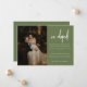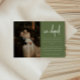 Faire-part moderne Olive Green Photo Mariage Elopement. Ajoutez votre message d'évènement, votre photo de mariage préférée, et vos initiales de mariée et de mariée à cette carte de faire-part minimaliste et élégante "we eloped".
