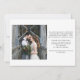 Cette carte simple et élégante d'annonce de fuite de noces présente une photo de mariage personnelle sur le devant, avec les mots "juste mariés" dans un écriture manuscrite rustique et blanche. Le verso de la carte dispose d'un espace pour une autre photo, ainsi que d'un espace pour soit donner plus de détails sur votre fuite de noces, soit fournir des informations sur une réception ou une célébration après le mariage. Un design élégant qui est le moyen idéal pour informer vos amis et votre famille que vous êtes juste mariés !