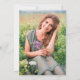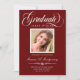 Annoncez votre diplôme universitaire à votre famille et à vos amis en style avec cette élégante carte de faire-part photo personnalisée. Ce modèle design moderne dispose d'un élégant script de calligraphie blanche qui dit "Graduate Class of 20XX" avec votre nom, université, diplôme et date pour personnaliser avec votre photo sur un arrière - plan marron rouge. Le dos de la carte a aussi une photo complète. Félicitations pour votre diplôme ! Conçu par Susan Coffey.