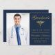 Faire-part Médicale Marine Blue Gold Caduceus Photo Graduatio