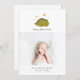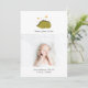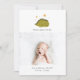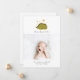Carte de modèle photo vert mignon avec une adorable illustration de dinosaure bébé vert dormant sous les étoiles jaunes sur le devant. Il y a 2 photos de votre nouveau-né qui peuvent être ajoutées sur cette carte (avant et arrière), et un espace sur le dos pour votre message personnel. Carte parfaite pour annoncer l'arrivée de votre nouveau bébé avec ses statistiques de naissance. Idéal pour le bébé garçon et la fille. Parfait pour toutes les saisons !