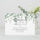 Ce faire-part minimaliste à eucalyptus vert présente un design moderne et magnifique. L'aménagement comprend des branches et des feuilles d'eucalyptus botaniques élégants dessinés à la main dans des aquarelles. Personnalisez la carte avec les détails de votre mariage, et utilisez le modèle au dos pour annoncer un changement d'adresse, pour les informations de réception, ou tout autre détail que vous souhaitez partager.