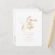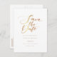 Cette carte de faire-part minimaliste présente un élégant faire-part en écriture calligraphique au-dessus de vos coordonnées, dans une typographie or élégante. Le verso présente des informations supplémentaires sur le faire-part, y compris votre site web de mariage, votre adresse de retour et un espace pour l'adresse de votre destinataire. Conçu par Thisisnotme©