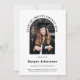 Annoncez votre réussite scolaire grâce à notre élégant faire-part minimaliste de remise de diplômes en photo. Ce design présente un texte noir élégant sur un arrière - plan blanc immaculé, avec une zone de photo voûtée pour présenter votre photo de graduation préférée. Au-dessus de la photo, le texte en arche dit "Classe de Vingt-Cinq", ajoutant une touche sophistiquée. L'arrière de la faire-part comprend un texte collégial voûté disant "Graduate", ainsi qu'une image charmante d'une casquette et d'un diplôme. Personnalisez le casquette avec les initiales du diplômé pour un détail unique et mémorable. Parfait pour annoncer votre journée spéciale en style!